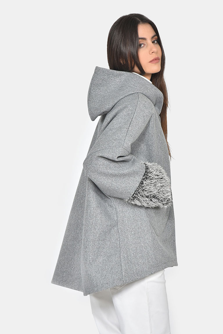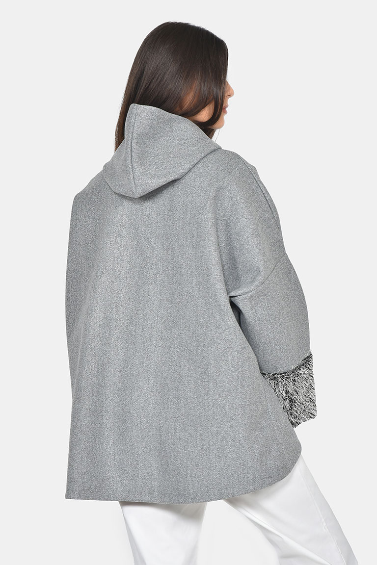 Oversized felt zipped jacket with fur details in relaxed cut ,side pockets and slightly asymmetriacal hem. Lightweight and warm is easy to style due to the neutral grey shade.