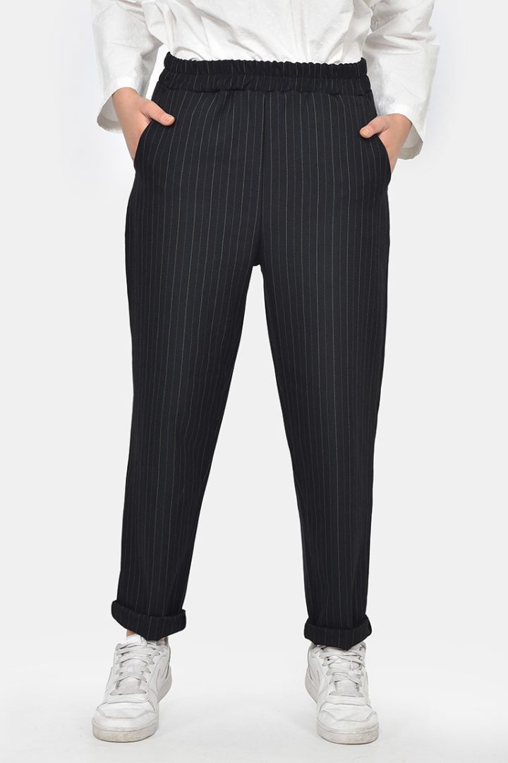 Μαύρο ριγέ παντελόνι σε ανδρική γραμμή