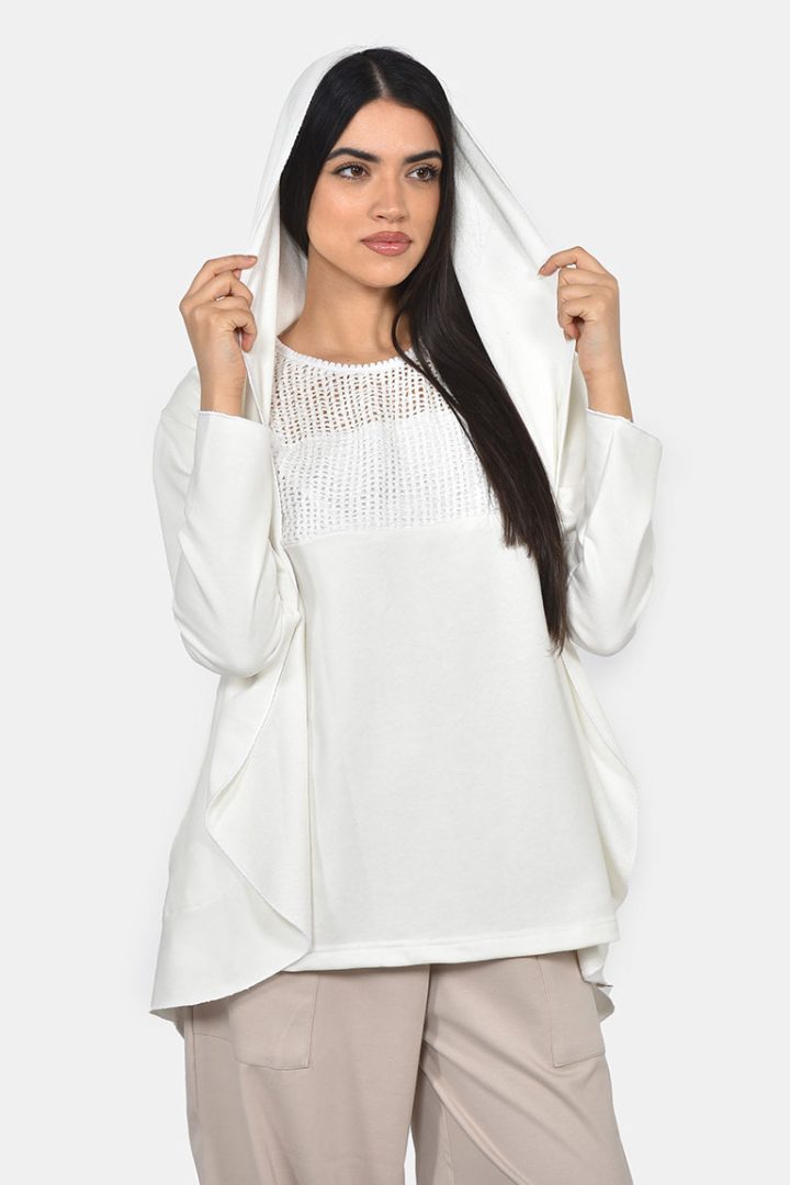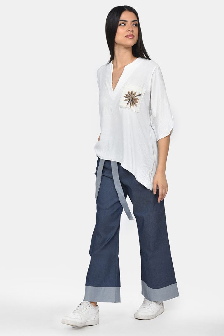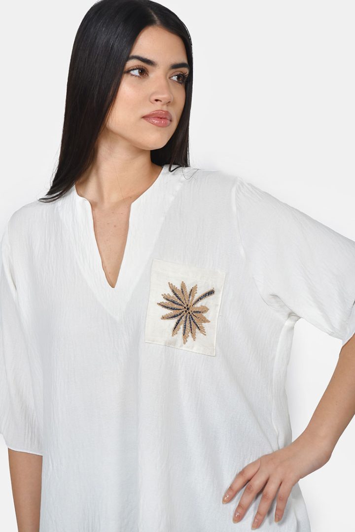 Ασύμμετρη εκρού μπλούζα με κέντημα