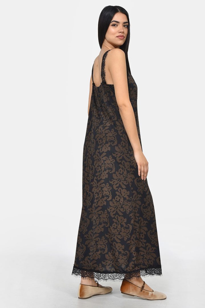 Φόρεμα σε εμπριμέ μαγιόπανο με δαντέλα