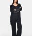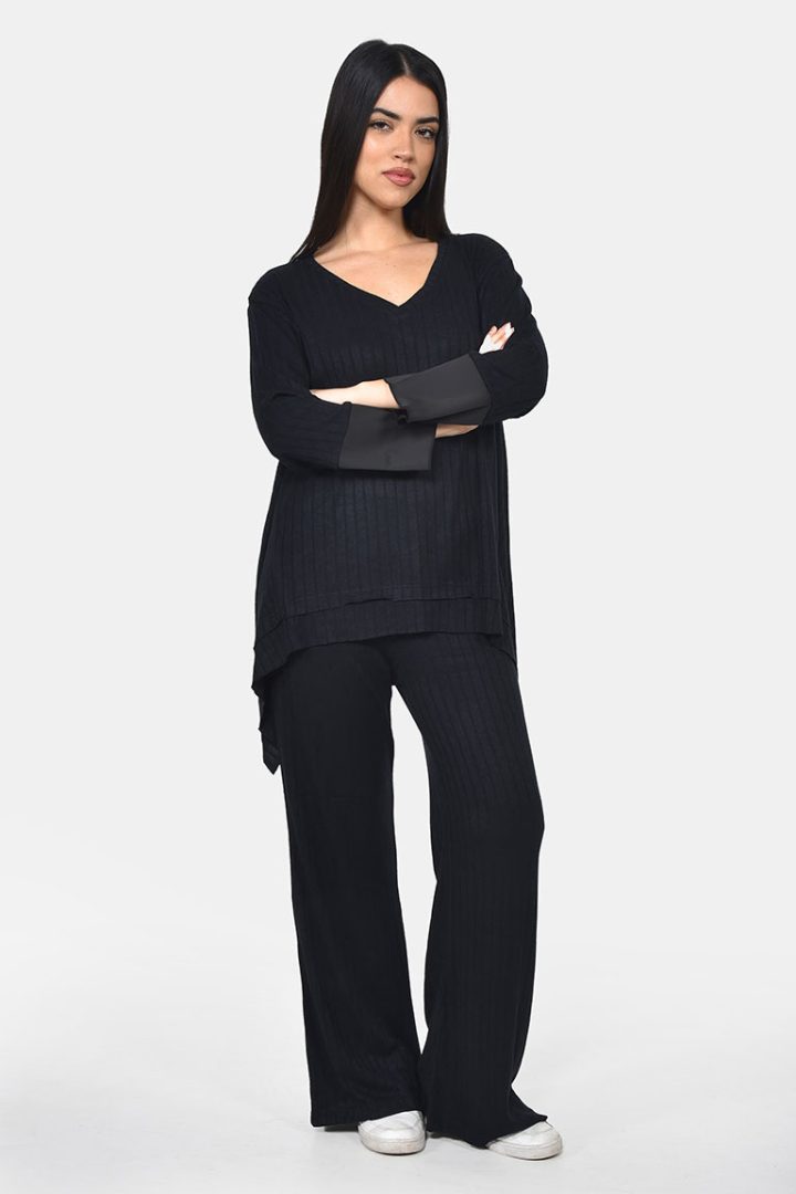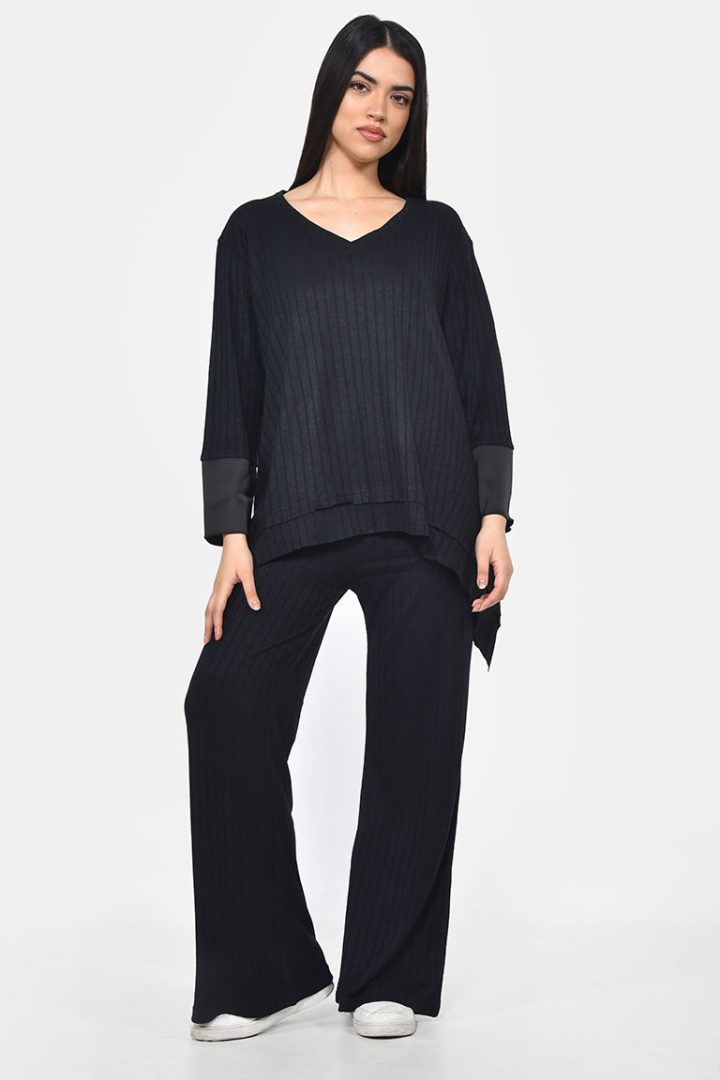 Μαύρο ριμπ σετ από ασύμμετρη μπλούζα και ίσιο παντελόνι
