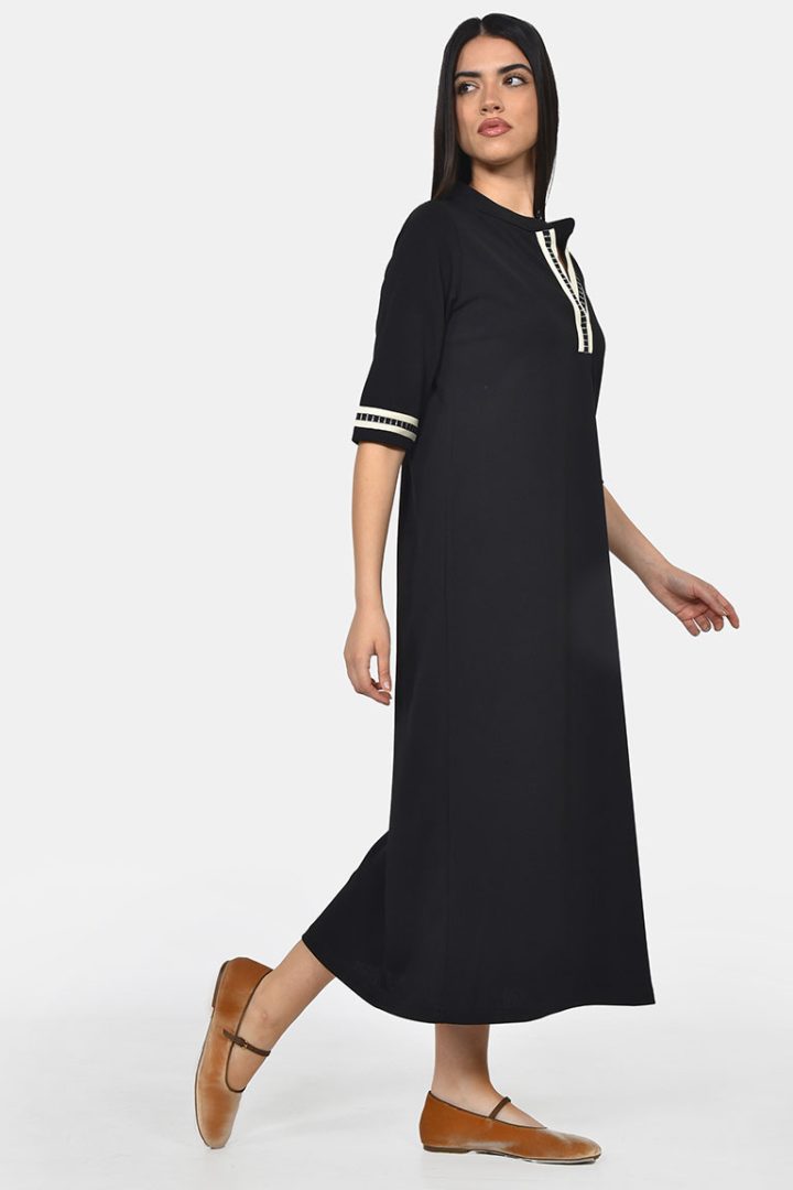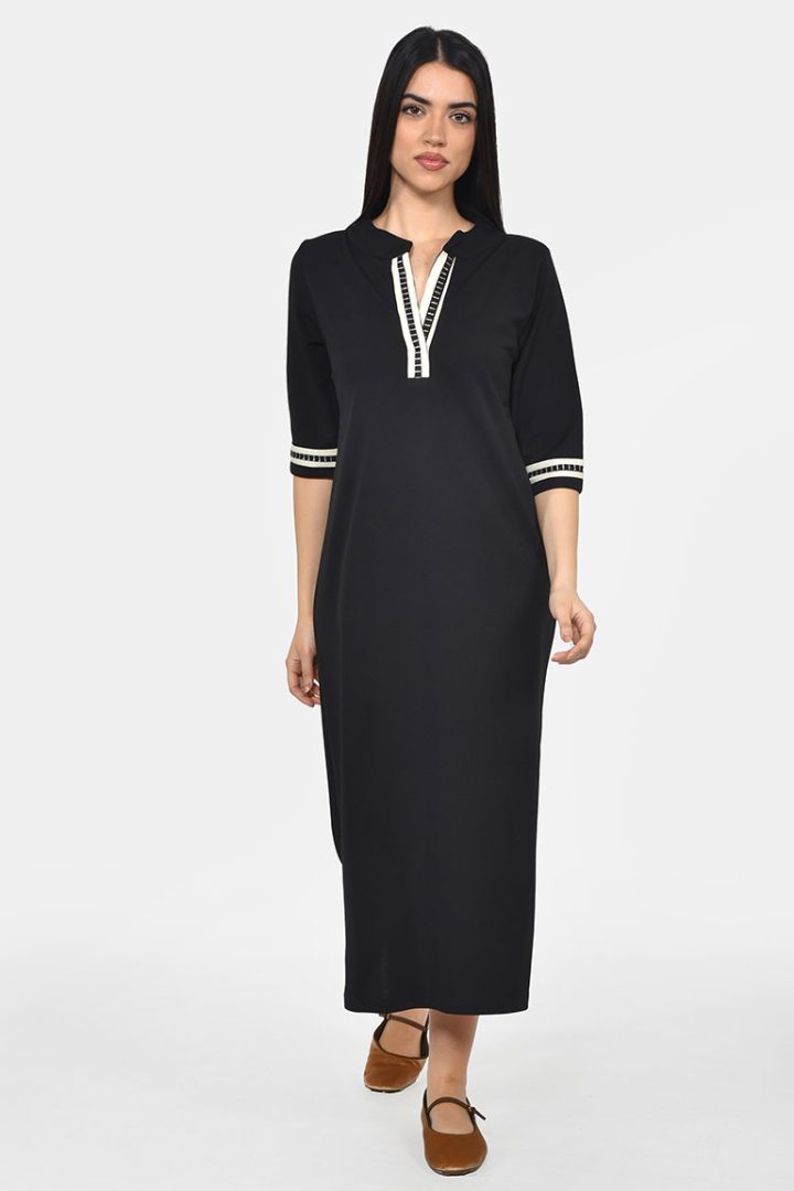 Μαύρο ζέρσευ φόρεμα με ριγέ τρέσες