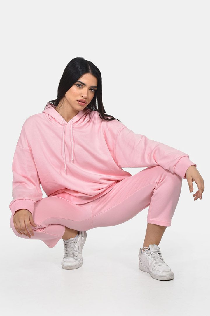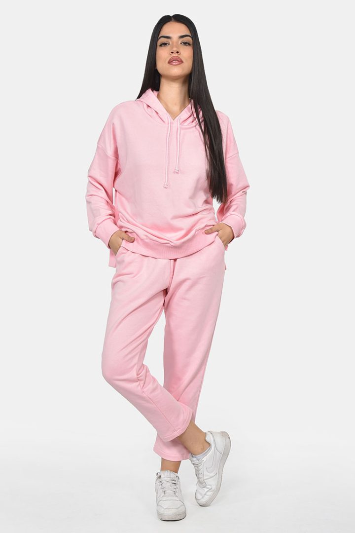 Μπεζ ριμπ σετ από ασύμμετρη μπλούζα και ίσιο παντελόνι