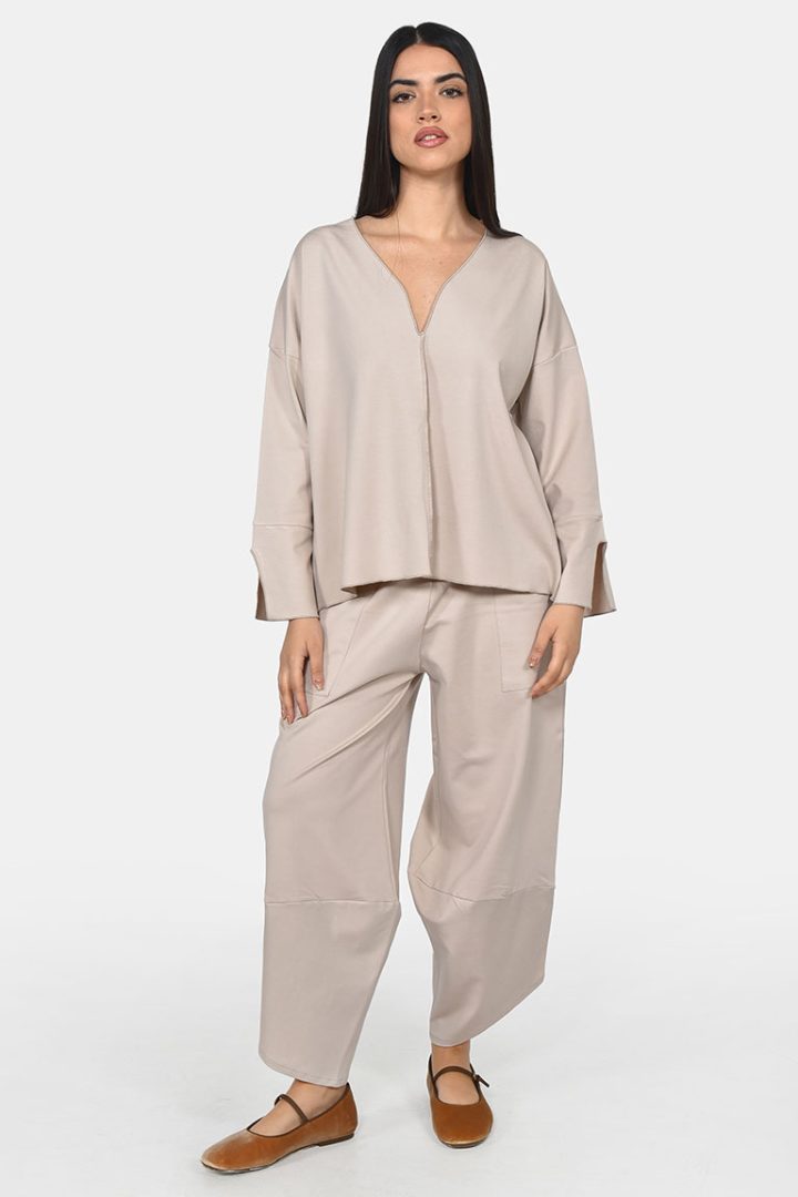 Ζερσευ μακρύ φόρεμα με μπεζ τελειώματα