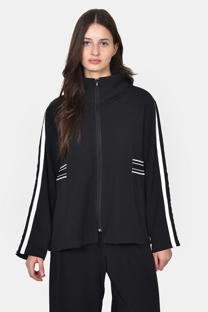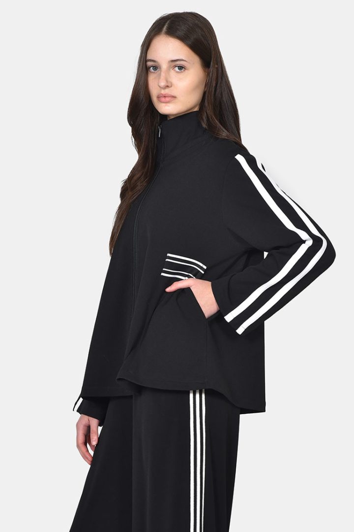 Μαύρο ζέρσευ φόρεμα με ριγέ τρέσες