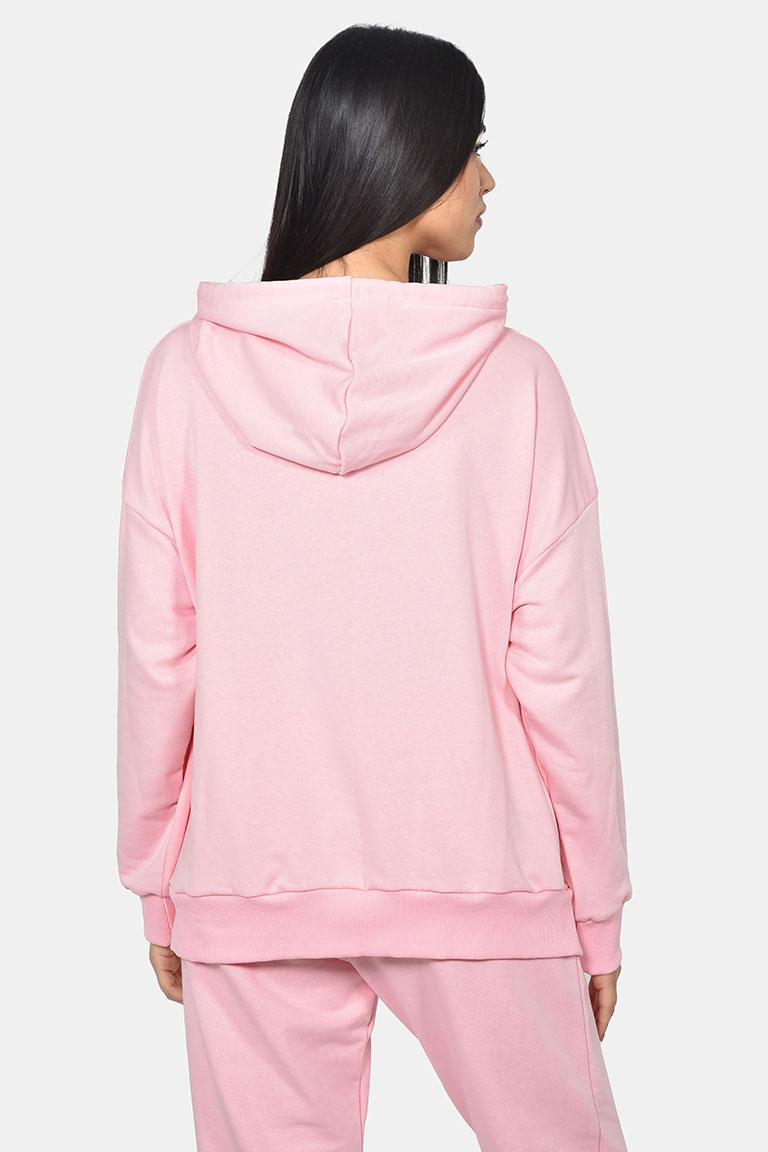 Ροζ βαμβακερό φούτερ με κουκούλα σε μοδάτο παστελ ροζ, κομμένο σε γραμμή oversized και σε μήκος κάτω από τη μέση.Μινιμαλιστικό γιατί δεν έχει τίποτα περιττό επάνω του εκτός από το ιδιαίτερο ροζ χρώμα του και με κουκούλα που είναι σε μέγεθος κατάλληλο για να σας ζεσταίνει ,όπως και τα ευρύχωρα μανίκια του.