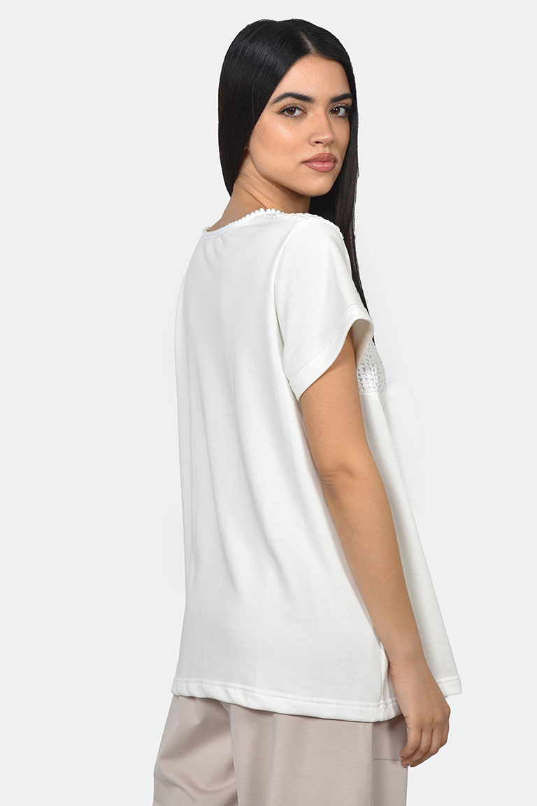 Εκρού φούτερ μπλούζα με διχτυωτή λεπτομέρεια