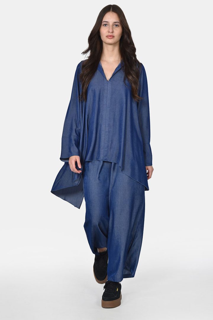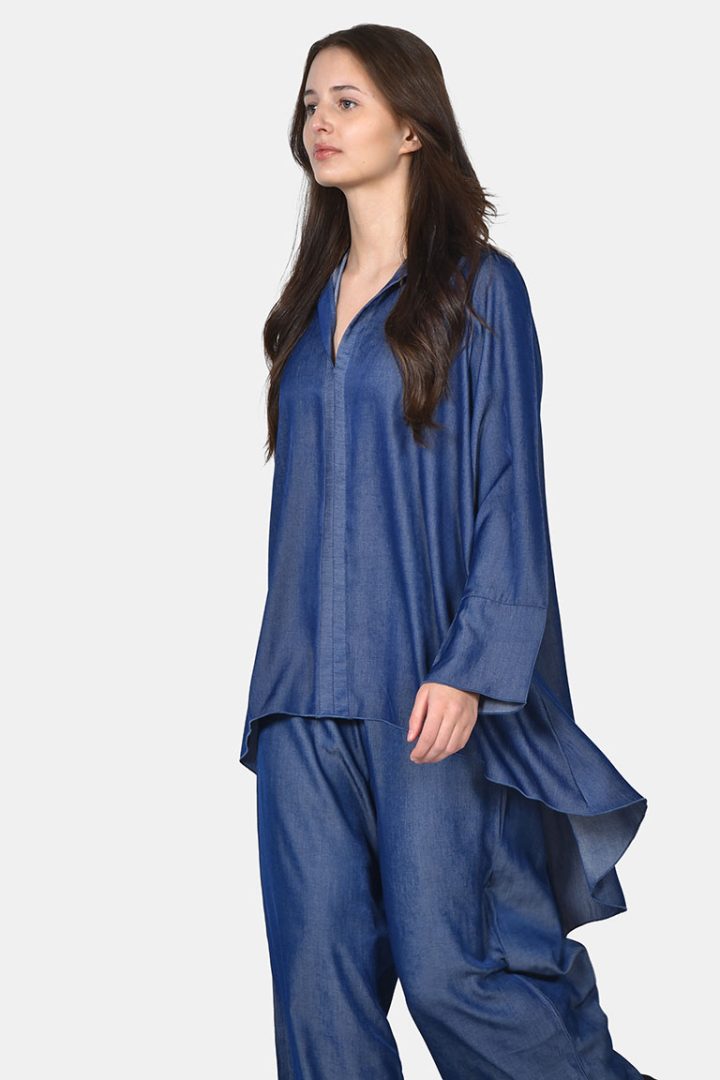 Τζην μίντι πουκαμισοφόρεμα με ζώνη