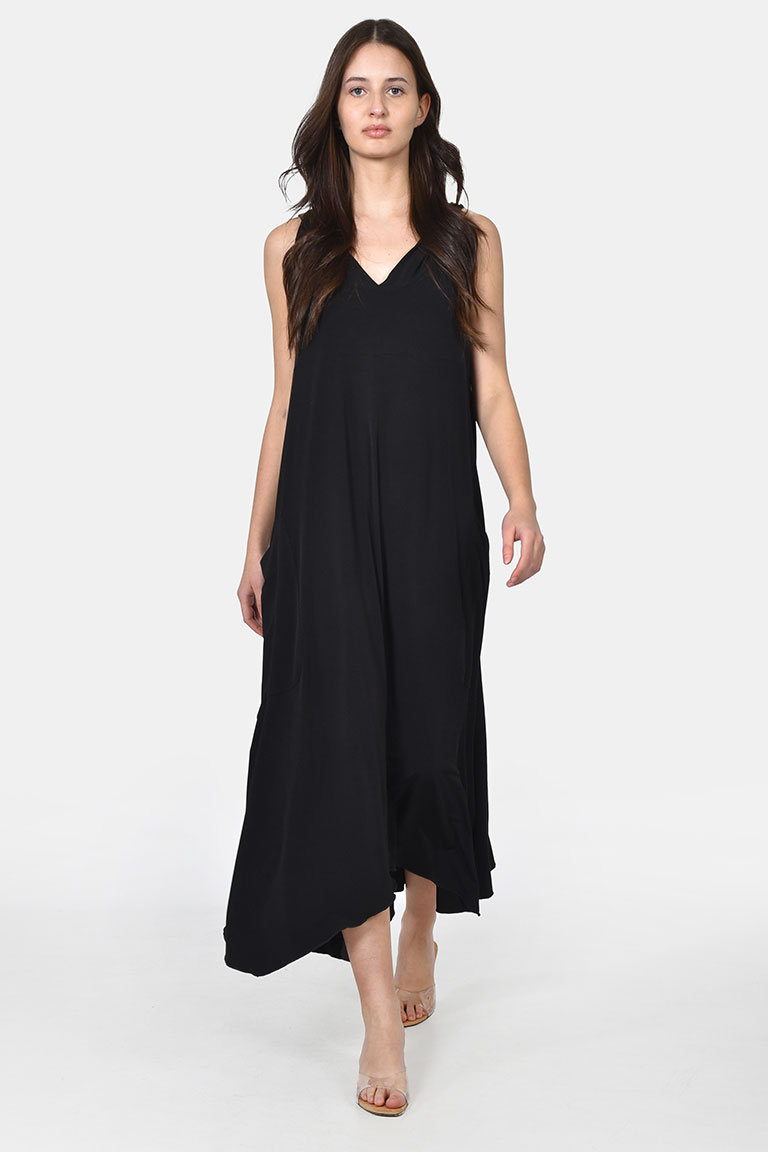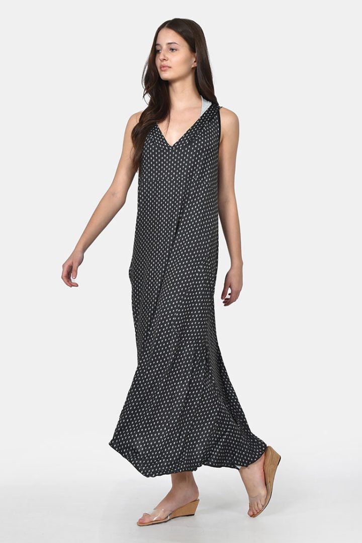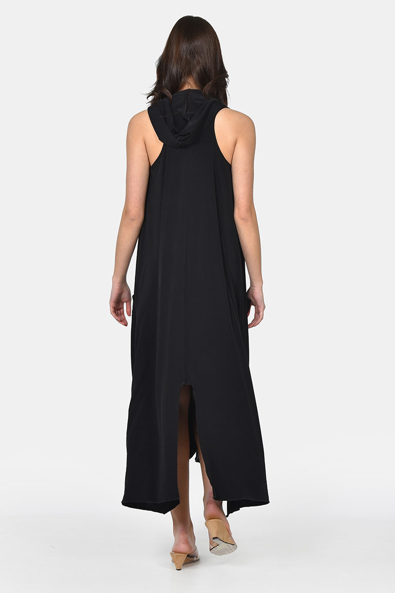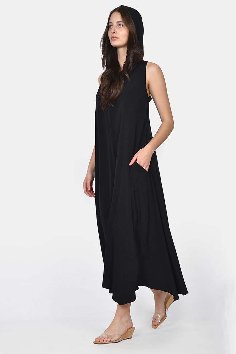 Μαύρο oversized φόρεμα με κουκούλα σε άνετη άλφα γραμμή με τσέπες.Φορέστε το όλες τις ώρες με σανδάλια ή ψηλές πλατφόρμες σκέτο ή και με ένα κοντομάνικο λευκό μπλουζάκι από μέσα.50% βισκόζη 50%πολυέστερ