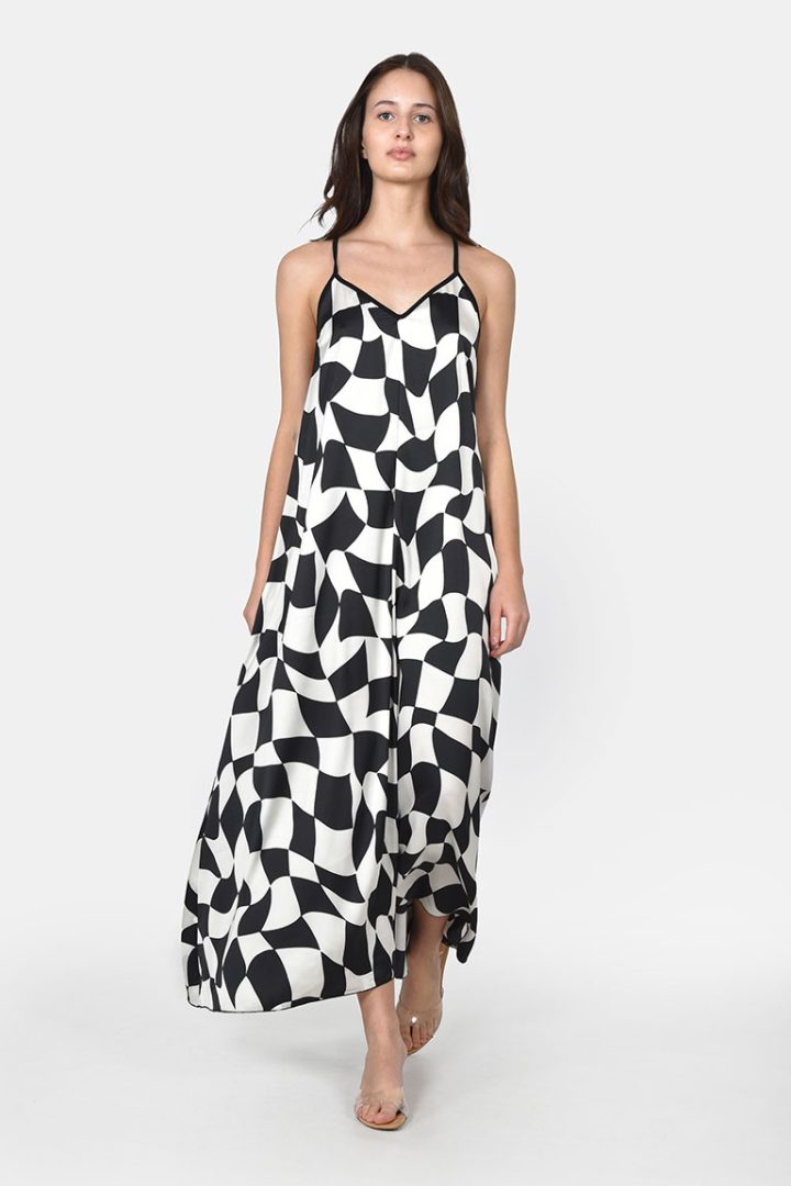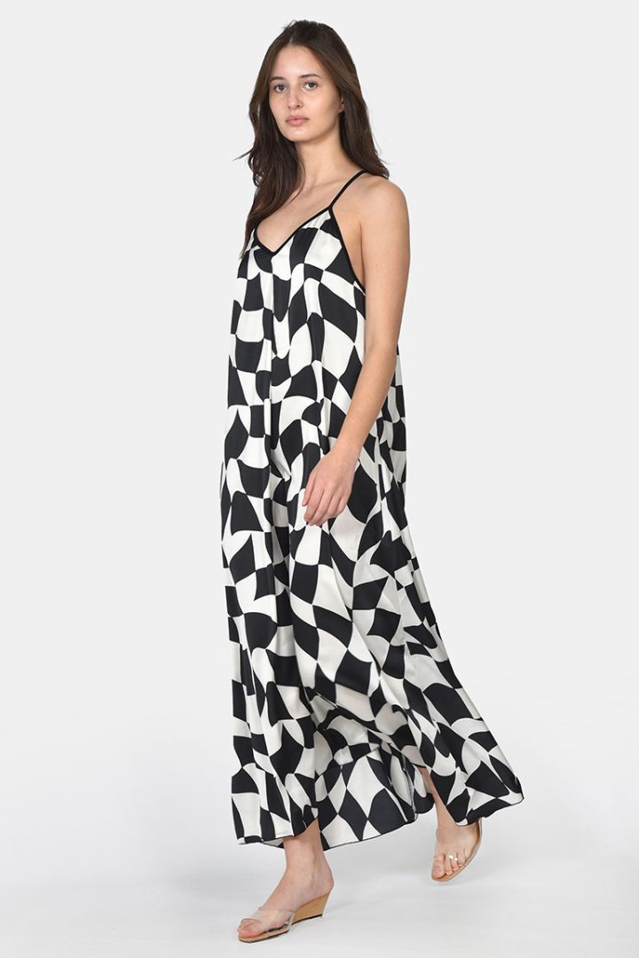 Ελαστικό παντελόνι με ασπρόμαυρο τύπωμα και τρέσα