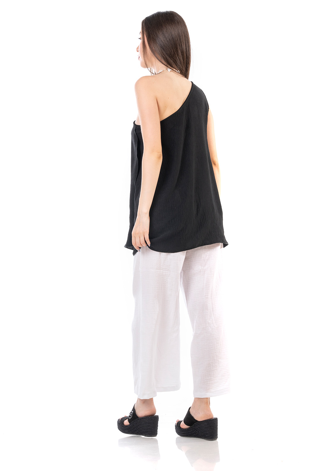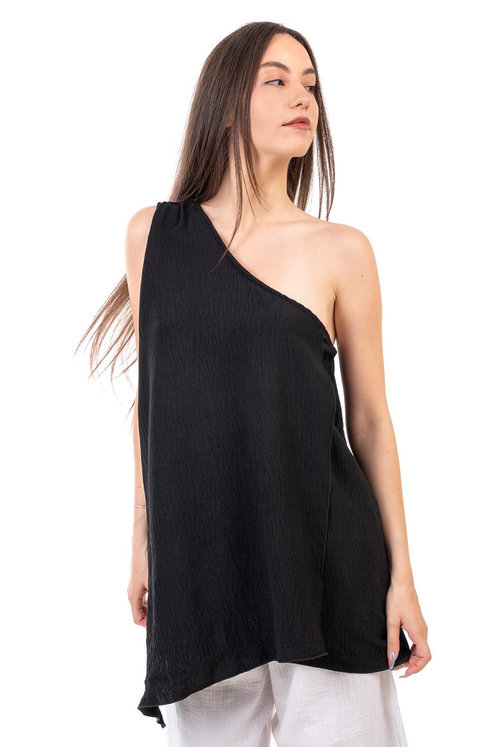 Aσύμμετρο μαύρο τοπ με έναν ώμο